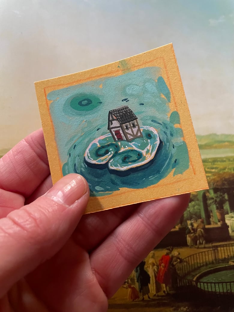 "House Boat II" // Original Miniature Painting. ++FREE INTERNATIONAL SHIPPING++28,00 € -